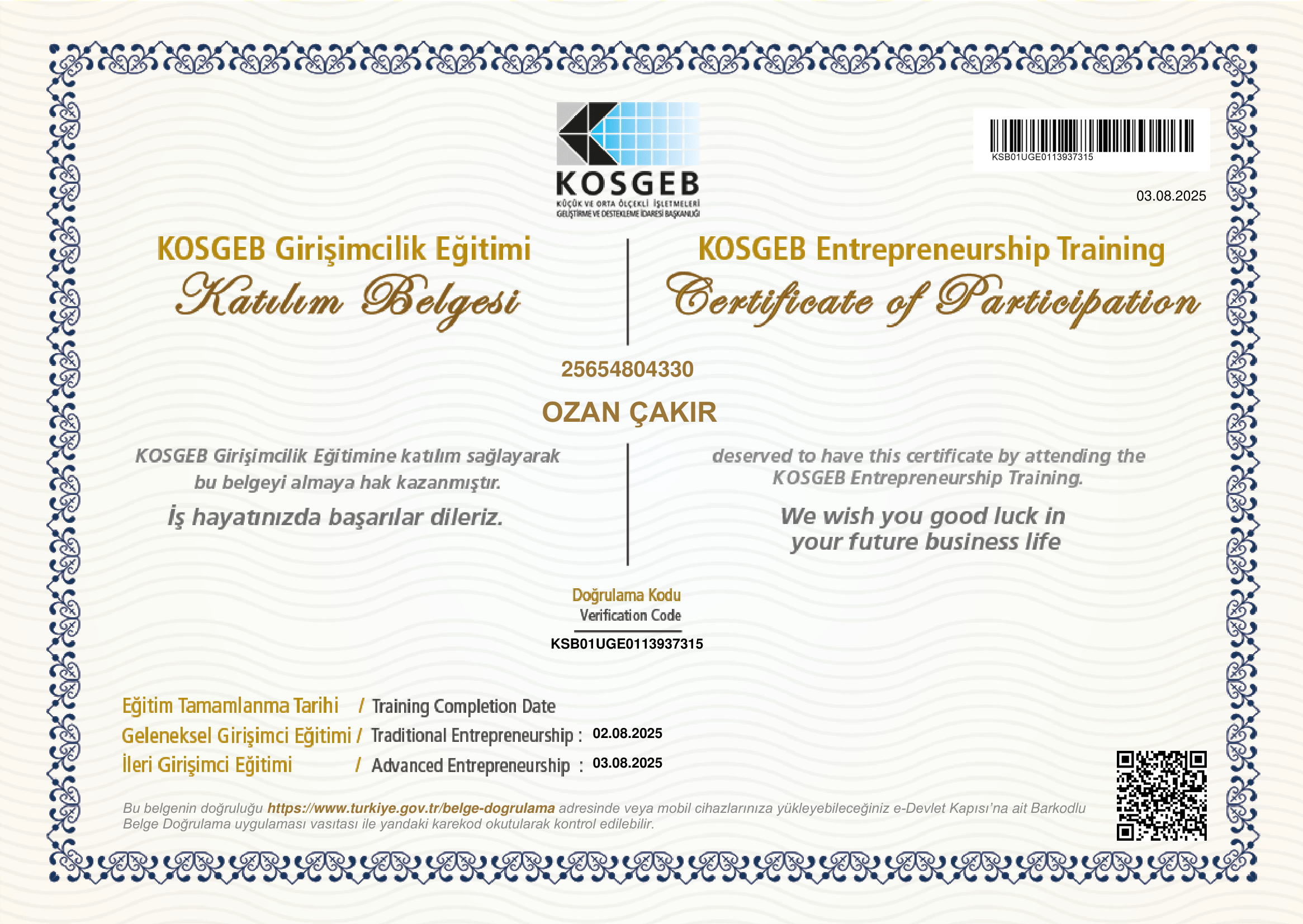 Sertifikalar